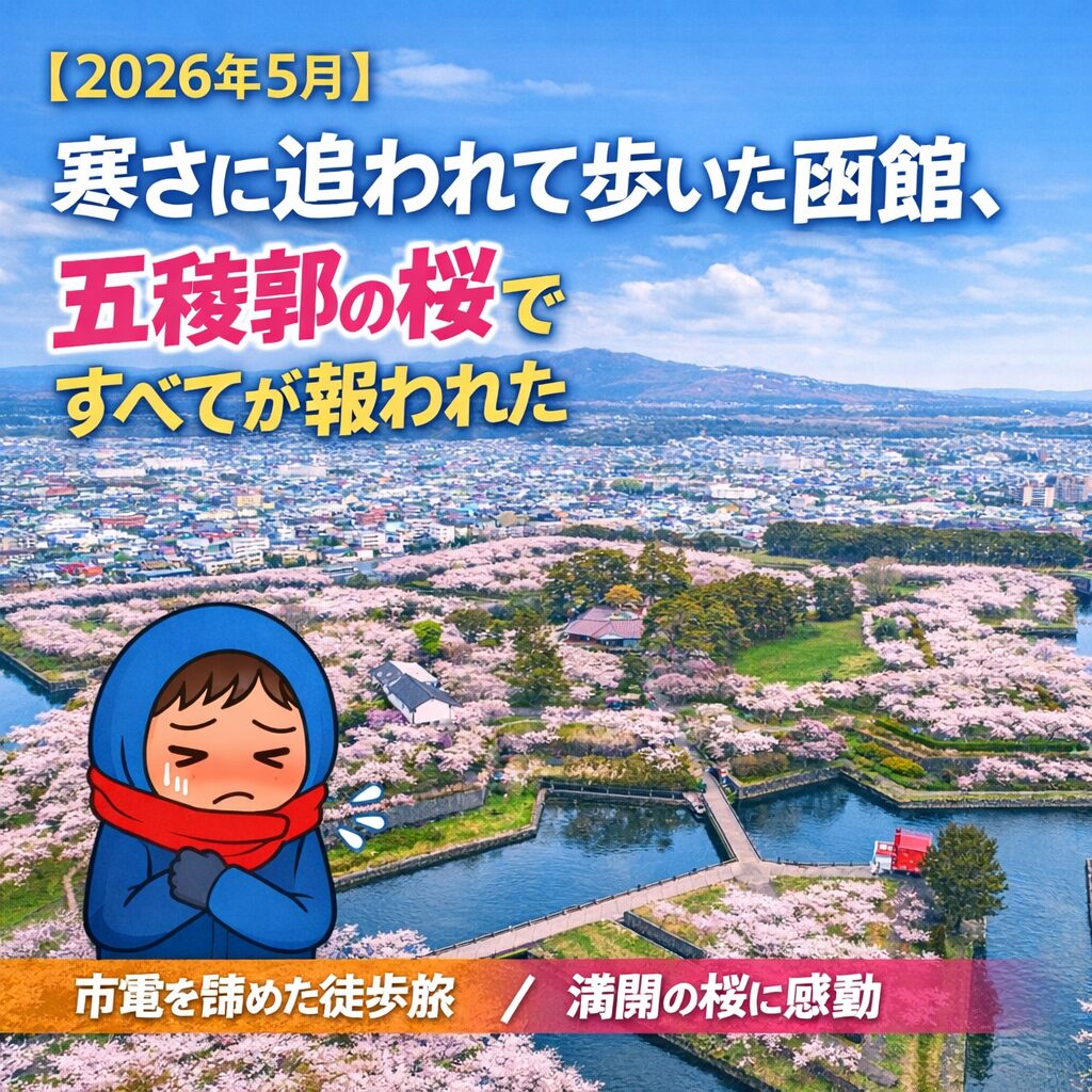「寒すぎて市電を諦めて歩いたら、五稜郭の桜で全部報われた話」はこちら。