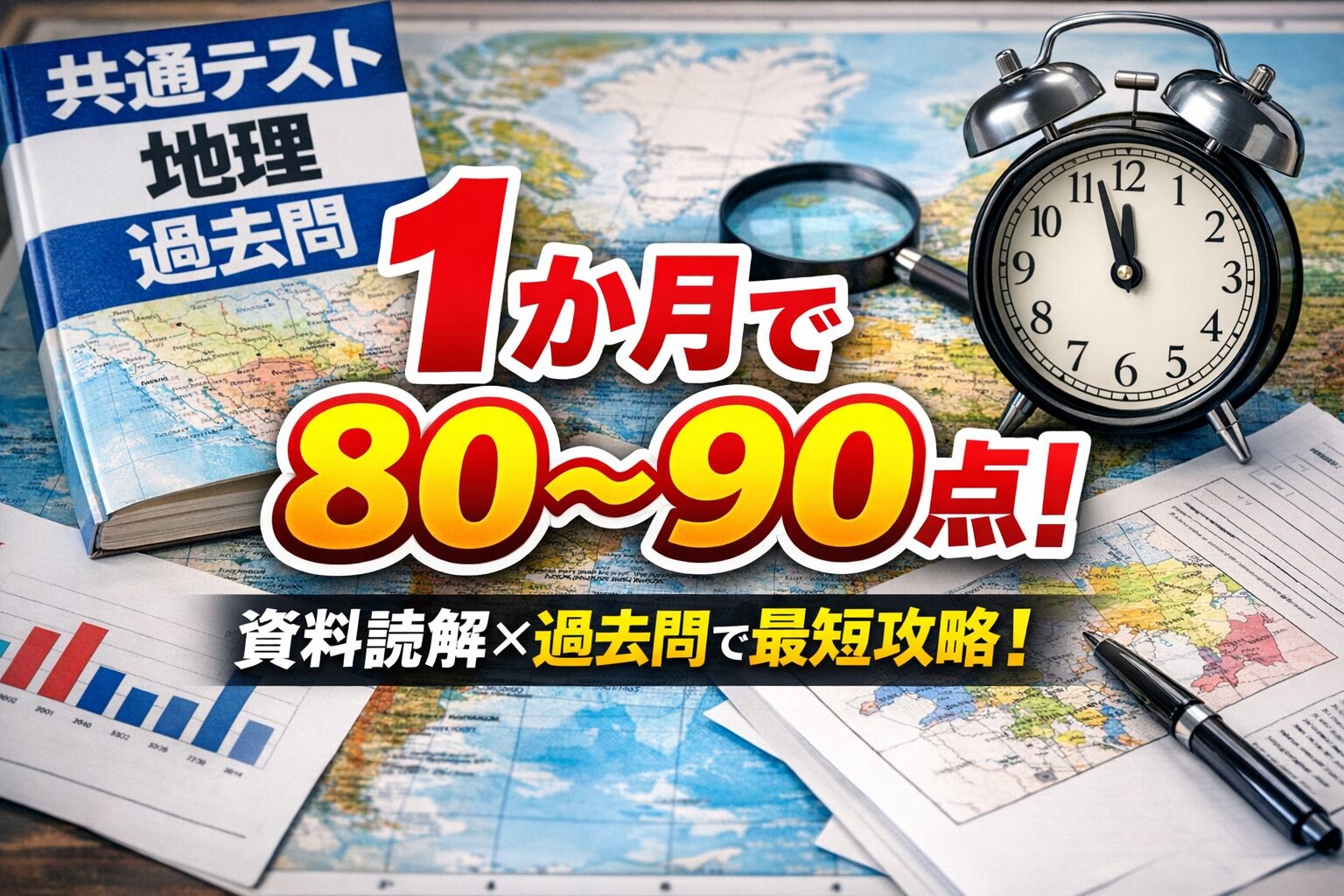 ——結論、“最短で点が伸びやすい科目”として地理はかなり現実的です。元々の暗記量が比較的軽く、資料(地図・統計・グラフ)を読んで考える問題が多いので、やり方を掴めば伸びます。