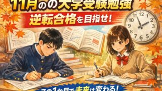 11月の大学受験勉強で迷っている人へ。基礎に戻るべきか、演習を進めるべきか。本記事では11月にやるべき勉強・やってはいけない行動を実体験ベースで解説します。