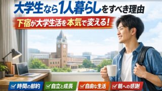大学生が1人暮らし(下宿)をするメリットを実体験ベースで解説。通学時間の削減、自由時間の増加、自立の重要性まで網羅。本気で大学生活を充実させたい人向けの記事です。